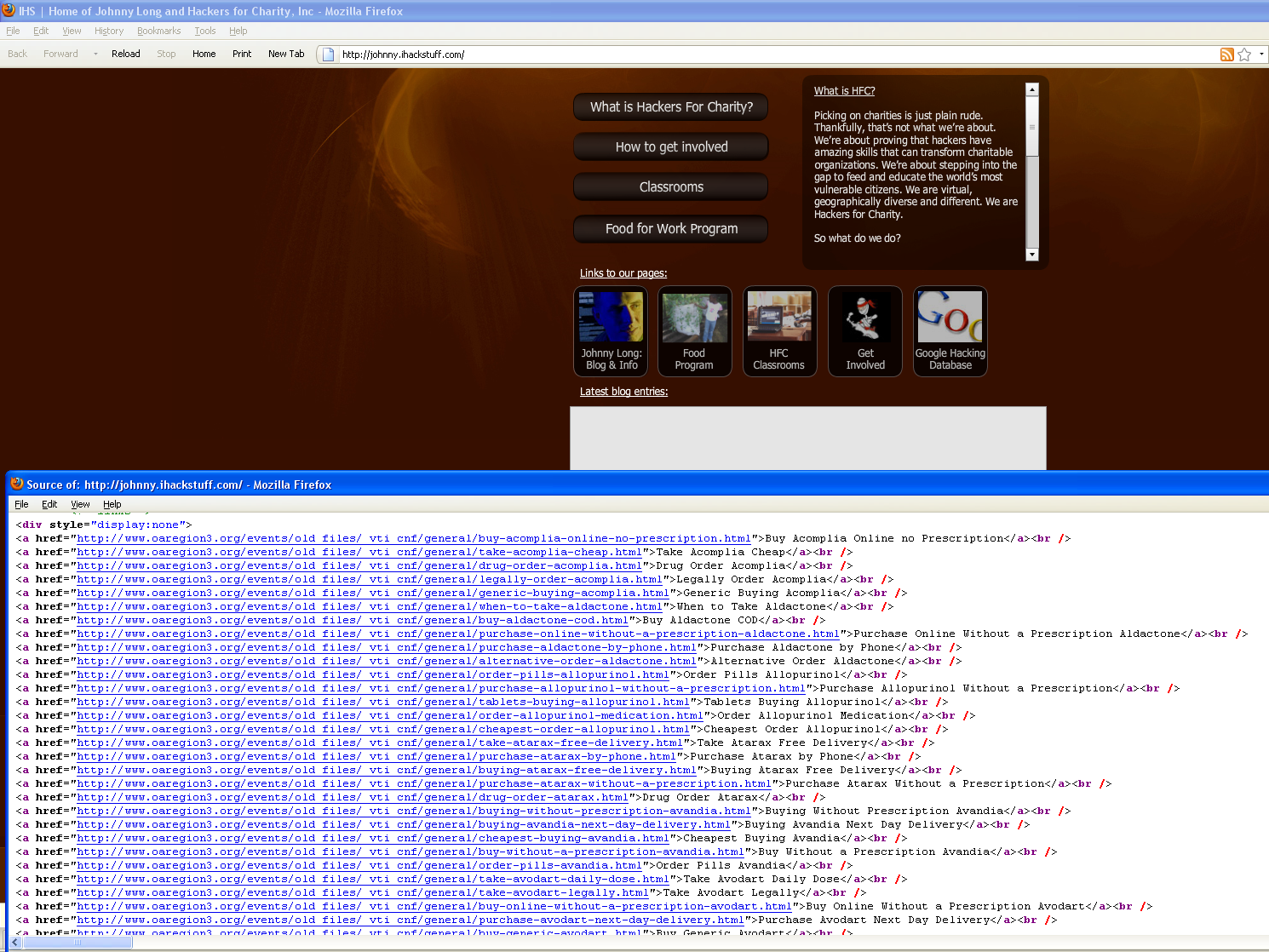 Johnny, noted for his 'ihackstuff' site and Hackers for Charity, got hit by spammers.