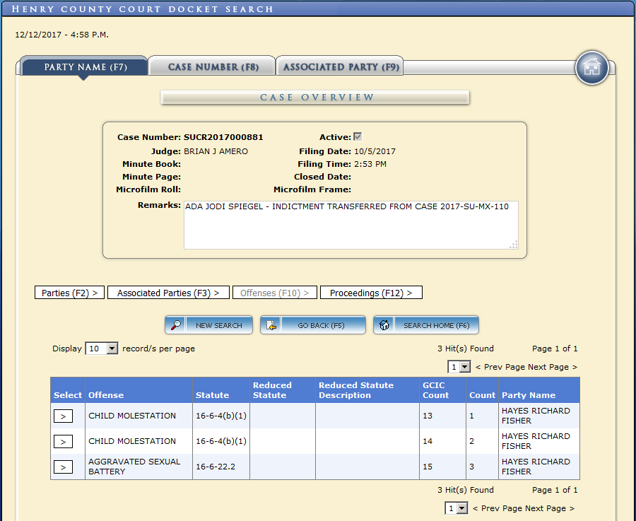 Rick Hayes, producer of the InfoSec Daily Podcast (@isdpodcast), contributer to Business Insider, and former "Force Practice Lead" with TrustedSec, was arrested on September 12, 2016 and terminated by his employer on September 13, 2016. He was indicted by a Henry County grand jury on December 15, 2016, charged with aggravated child molestation and two counts of child molestation (suspected of molesting a 15-year-old family friend on two separate occasions in August, 2016), and plead not guilty in Henry County Superior Court on February 21, 2017. In August, 2017, Hayes was charged with a second set of crimes after a grand jury returned a 10-count indictment that included charges of possessing pornographic images of children, including infants. On October 23, a third set of charges were filed against Hayes (two additional counts of child molestation and a count of aggravated sexual battery) related to a second teenage victim allegedly subjected to sexual assault. This brings the total number of criminal charges to 16 across three separate cases pending in Georgia. Since his arrest, Hayes has been held in the Henry County Jail without bond. In April of 2018, Hayes plead guilty to the charges.